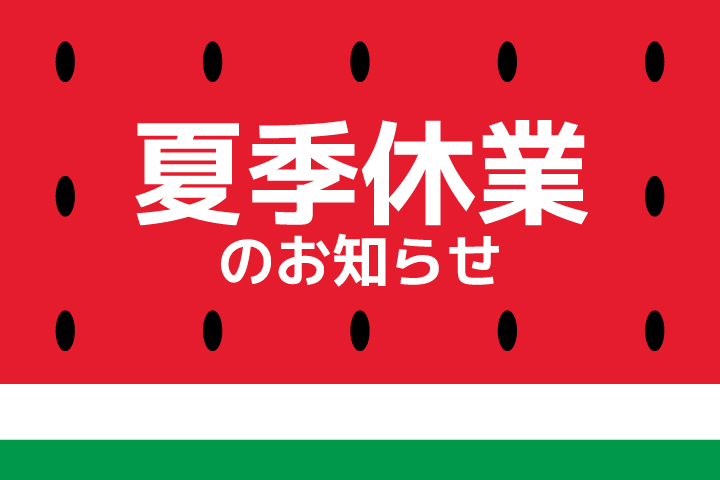 当社の今年の夏季休業は8月12日(祝)~16日(金)になります。 8月17日(土)より通常の定休日になります。 その他の祝日は営業しております。普段お仕事で忙しい方などのご来店をお待ちしております。
